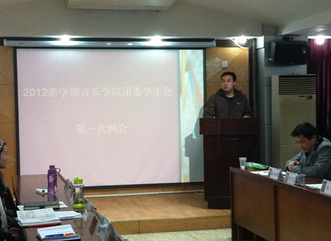 (通讯员 陈朝晖摄影 蔡怡然)2012年2月23日中午12点,华中师范大学音乐学院团委学生会2012新学期大会在音乐学院大会议室召开。