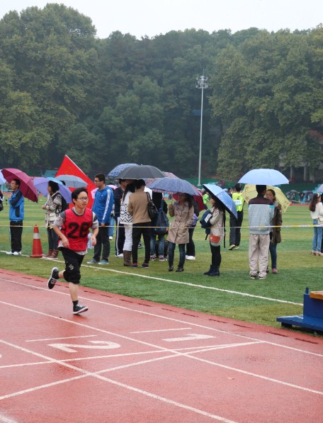 2013年上午10点左右,还下着小雨的天空渐渐放晴,迎着桂子山上的瑟瑟秋风,女子跳高预决赛正在场地中如火如荼的进行着,运动员们都紧张地做着赛前准备,当然其中也包括音乐学院的三名健儿——段念,汪毓雯,余莹。