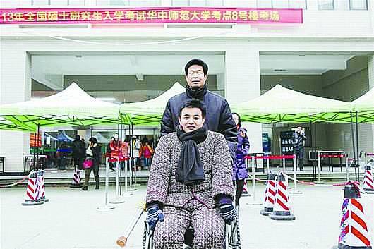 音乐男孩李强:我怕配不上自己受的苦难 《中国青年报》(2014年10月20日12版) 第二次考研,李强坐在轮椅上进考场。