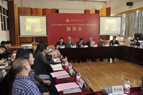 华大在线讯(见习记者 周华颖)10月23日,我校在音乐学院召开了深入学习贯彻习近平总书记在文艺工作座谈会重要讲话精神座谈会。