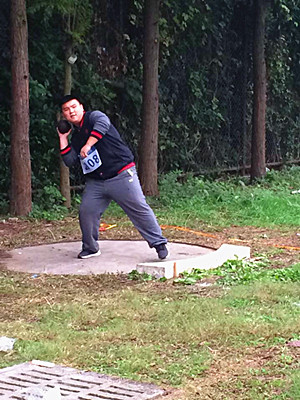 11月8日,学生男子组三级跳远预决赛于佑铭田径场举行。