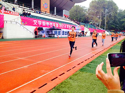 2014年11月8日9点,刚刚结束了800米的比赛,运动会最后一个项目4x100接力预决赛开始,大家团结一心,锐气不减,都发挥出了自己的最好成绩,最后音乐学院获得了男子4*100接力决赛第五名的好成绩。