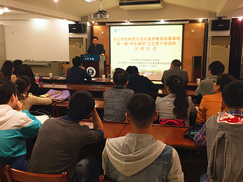 华中师范大学音乐学院研究生音乐素质教育拓展基地是面向全校各院系策划、以“声乐演唱”为主题的文艺骨干培训班。