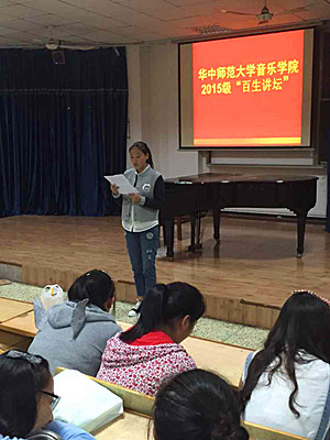 2015年10月7日晚八点,华中师范大学音乐学院2015级各班团支部组织的“百生讲坛”优秀主持人竞赛活动在音乐学院427教室举行。