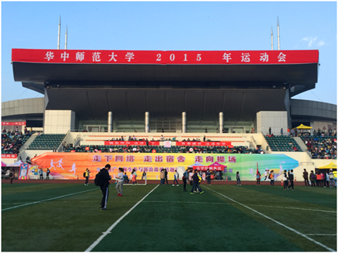 2015年11月7号,华中师范大学校运会在露天体育场拉开帷幕。