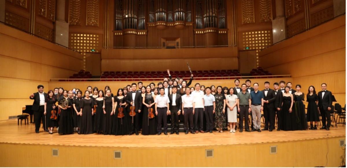 湖北日报讯(记者何宇欣) 6月14日晚,武汉琴台音乐厅灯火通明,一场由华中师范大学举办的“和谐之声”贝多芬作品专场音乐会吸引了众多师生前来欣赏。这场音乐会由华中师范大学音乐学院教师、青年指挥家邱耿华执棒,乐团成员主要来自音乐学院面向本科生开设的《西洋器乐合奏》课程学员们。本次演出旨在以中外著名交响乐作品系统研学,围绕立德树人根本任务,将专业知识介绍、演奏技能学习与价值观培育融为一体,打造主题特色的美育与思政融合课程。