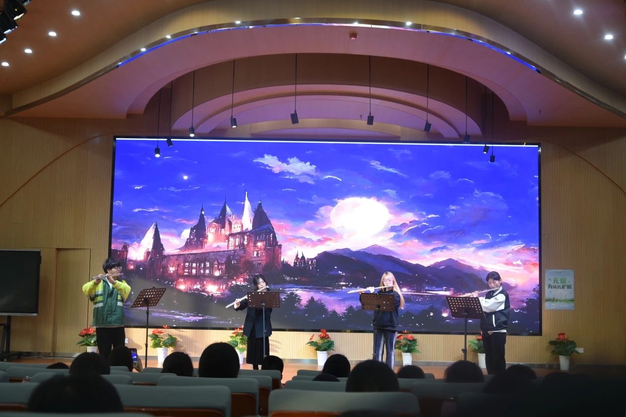 廖宇航、毛紫瑞、赵若涵、石翊菲带来的乐器合奏《哈利波特与圆舞曲》,开启了通往魔法的九又四分之三站台,带同学们进入神秘、奇幻的魔法世界。