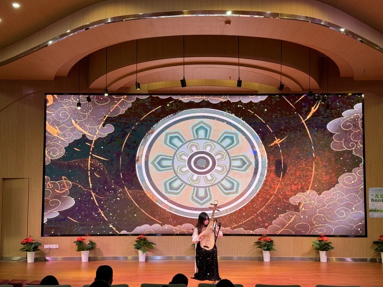 琵琶独奏《龟兹舞曲》,形象的描绘出古丝绸之路上龟兹乐舞的热烈场面,为同学们展现出浓郁的西域风格与盛唐气象。