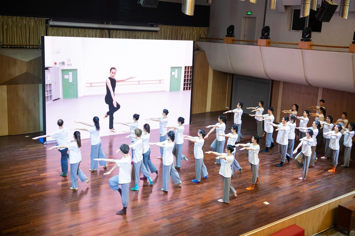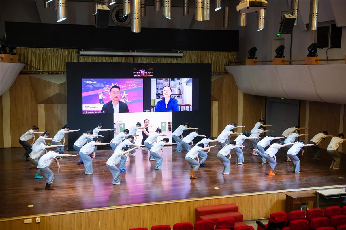 此次连线活动对华中师大舞蹈学子来说,也是一次生动的课堂。学子们还在老师指导下,学习并排练舞蹈动作。