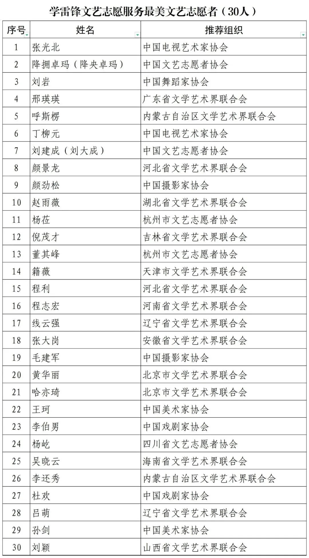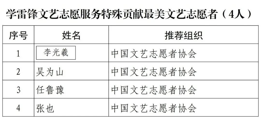 第二届宣传推选学雷锋文艺志愿服务“时代风尚”先进典型名单