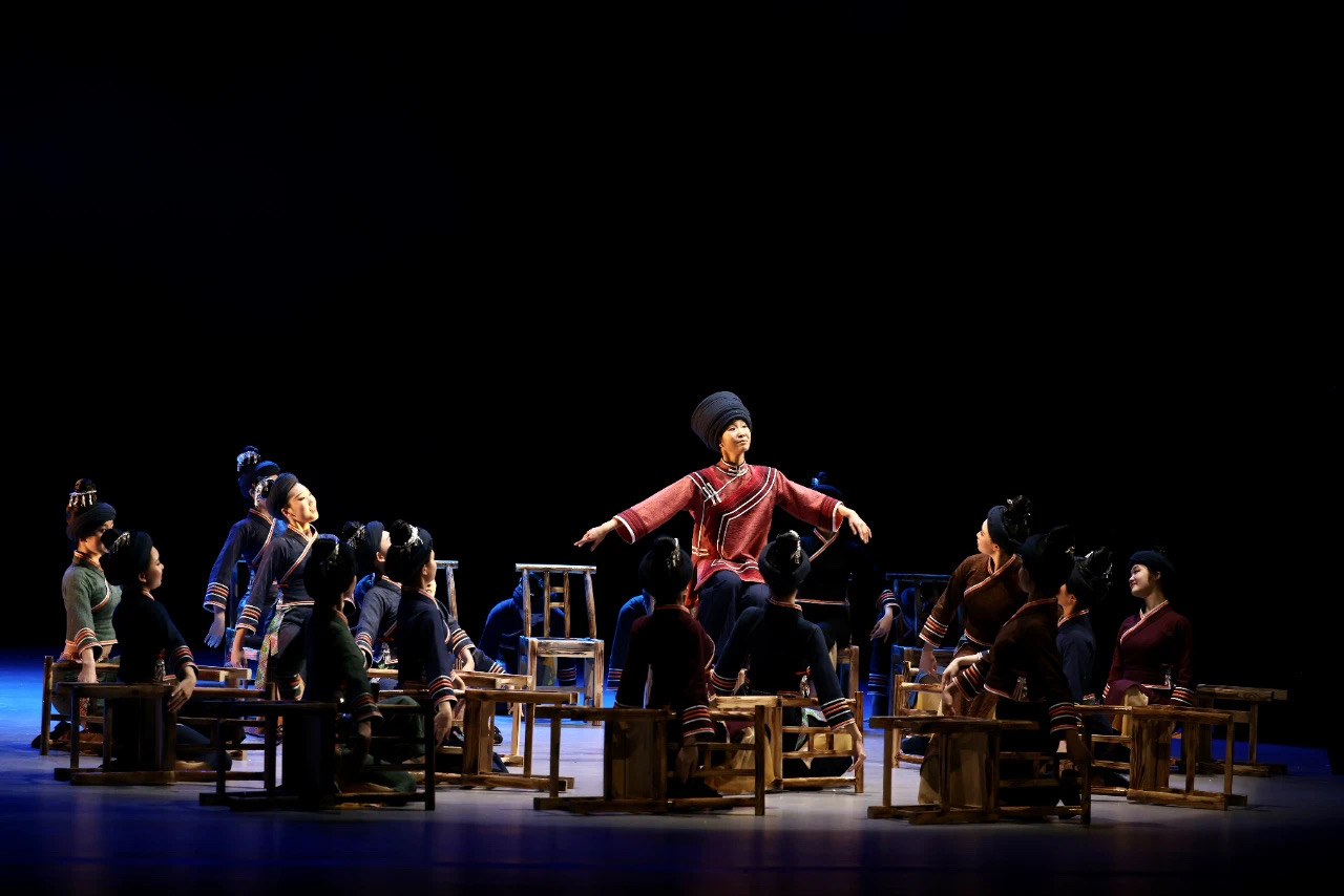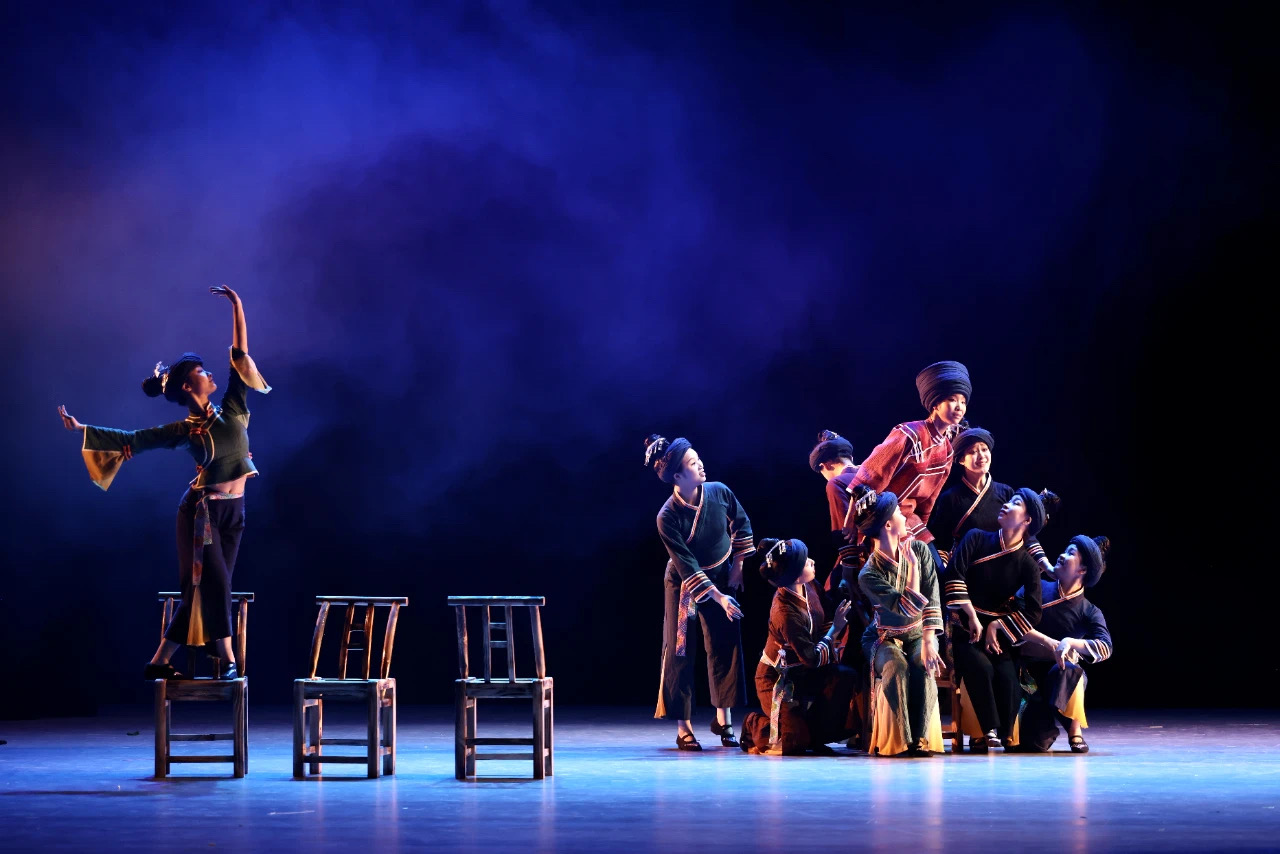 《妹娃过河》是由兰天文、于璐老师编创、导演,由华中师范大学音乐学院21级舞蹈班蒋芳明、余江蕾等学生演出完成的土家族女子群舞。由一条承载土家历史文化记忆的清江河展开,河水由此具有了“生命起源、空间流转、岁月洗礼”等多重象征。妹娃过河,是对自我价值的追寻,是向理想彼岸的远行,更是土家人对生命的热情与安顿。