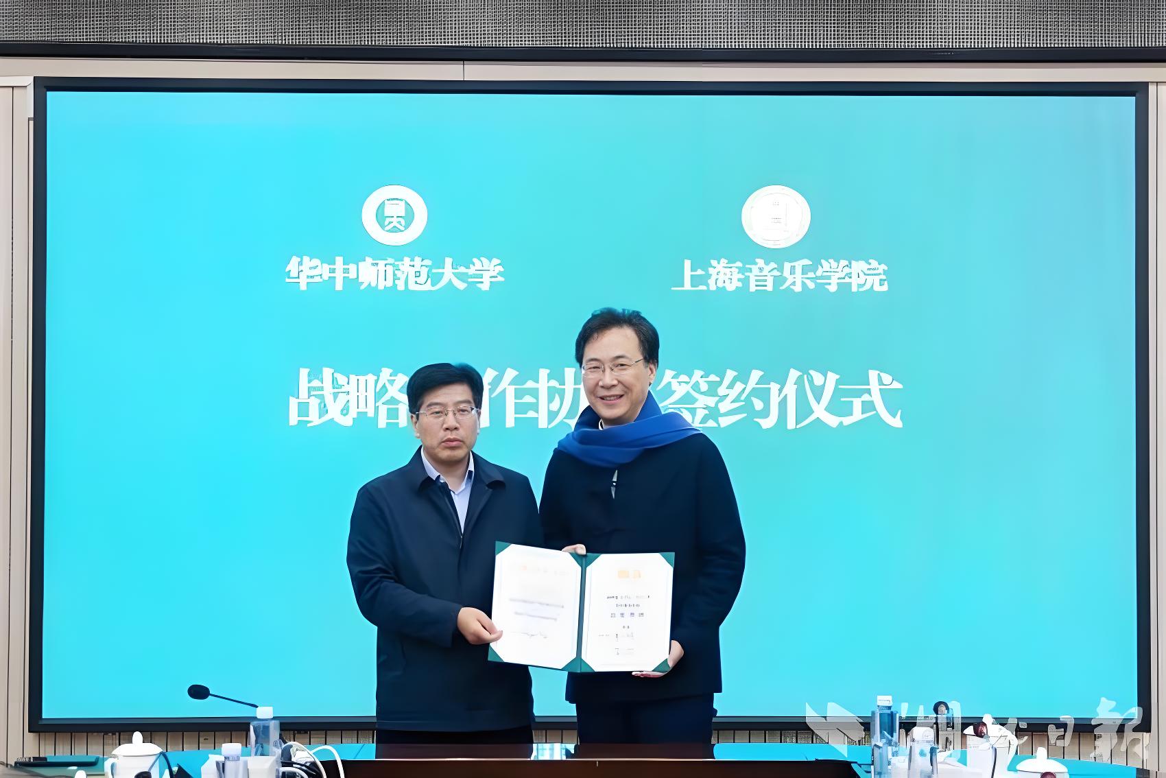 10月21日至10月23日,上海音乐学院院长廖昌永带领艺术实践和教材出版团队赴华中师范大学,开展高质量美育建设系列工作。期间,华中师范大学与上海音乐学院签署战略合作协议,廖昌永受聘为华中师范大学名誉教授,并与华中师范大学校长彭双阶、湖北省文化和旅游厅副厅长唐昌华共同为湖北省中国艺术歌曲研究与推广中心揭牌。