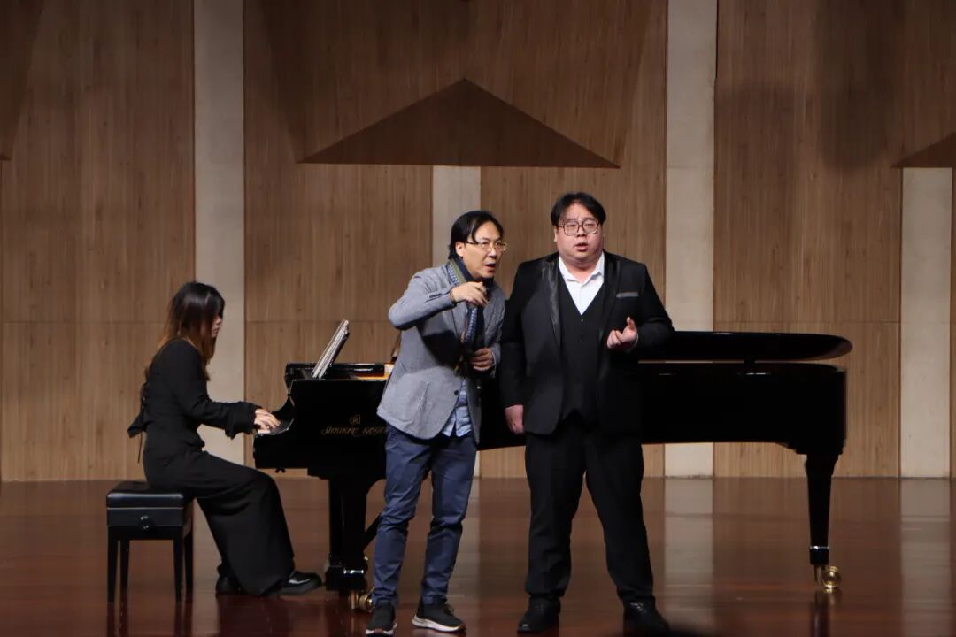 赖思丞:参加了廖昌勇老师的大师课,让我如同走进了新世界的大门。廖老师说,再唱一首艺术歌曲前,一定要把艺术歌曲的故事了解透彻,将故事的主人公带出自己,身如其境,才能唱出歌曲的灵魂。他没有停留于技巧说教,而是用“把每个音符唱进歌词的情绪里”这句话,点透了歌唱的核心——情感与技术的融合。课上,他针对学员发声问题的示范极具启发,从气息支撑的“像闻花香般自然吸气”,到咬字吐字的“让字音随旋律流动”,每一个指导都具体可感。最触动我的是他强调的“歌唱不是炫技,而是传递内心的温度”,这让我明白,好的演唱不止是声音的完美,更是情感的真诚表达。未来练歌,我会更注重情感代入,让声音真正为内容服务。