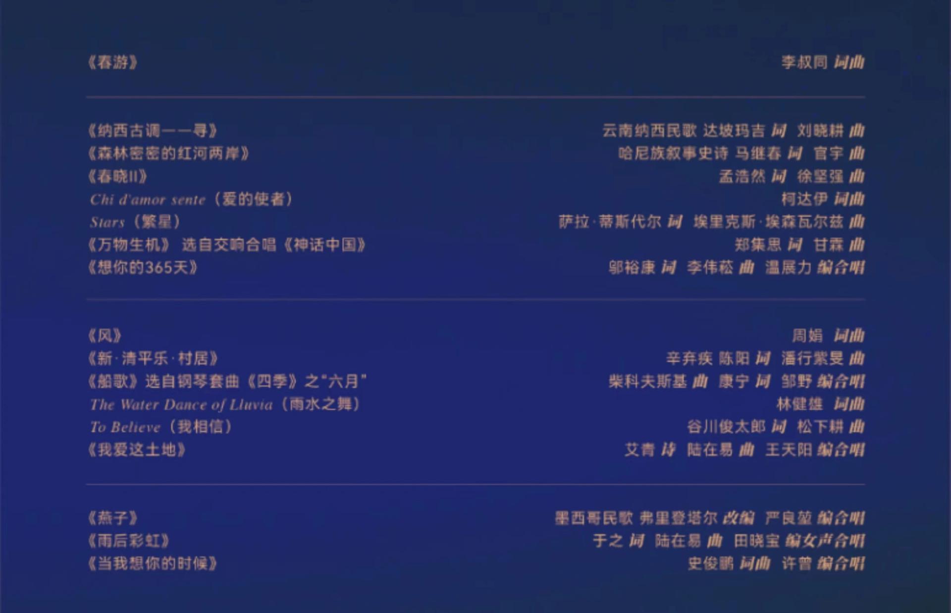 我们会在今天这场音乐会中展现出新的亮点:比如加入各种民族的一些音乐元素、不同的语言、不同的地区特色等等,以呈现出天空合唱团的多元化色彩。