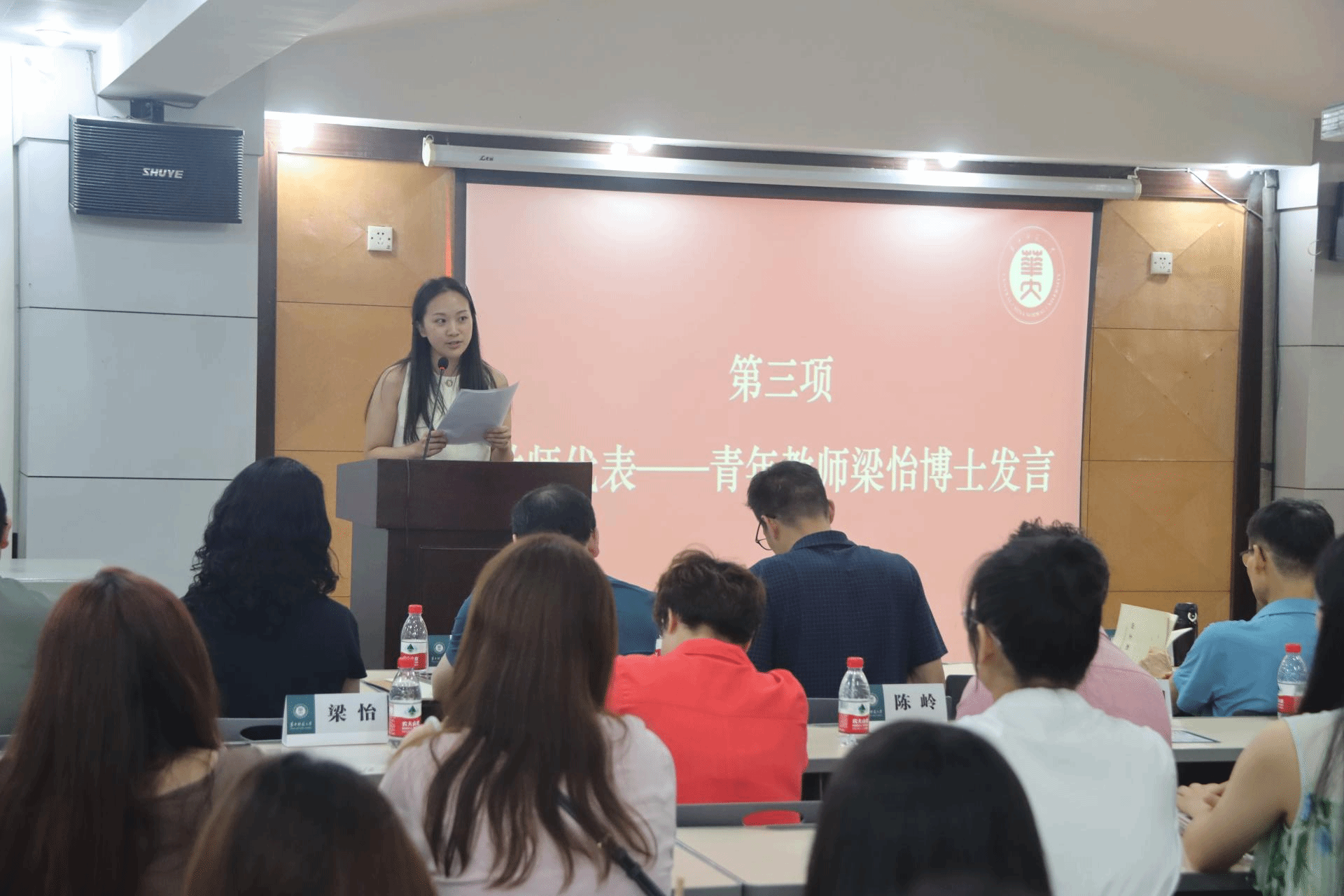 教师代表青年教师梁怡博士为研究生新生们分享了自己的求学和研究经历。她围绕田野调查、中国传统音乐、学术热崇三个方面与同学们进行交流。梁怡老师的发言激发了同学们对学术研究的热情,带领同学们思考研究生这一阶段的理想,成为优秀的专业人才。
