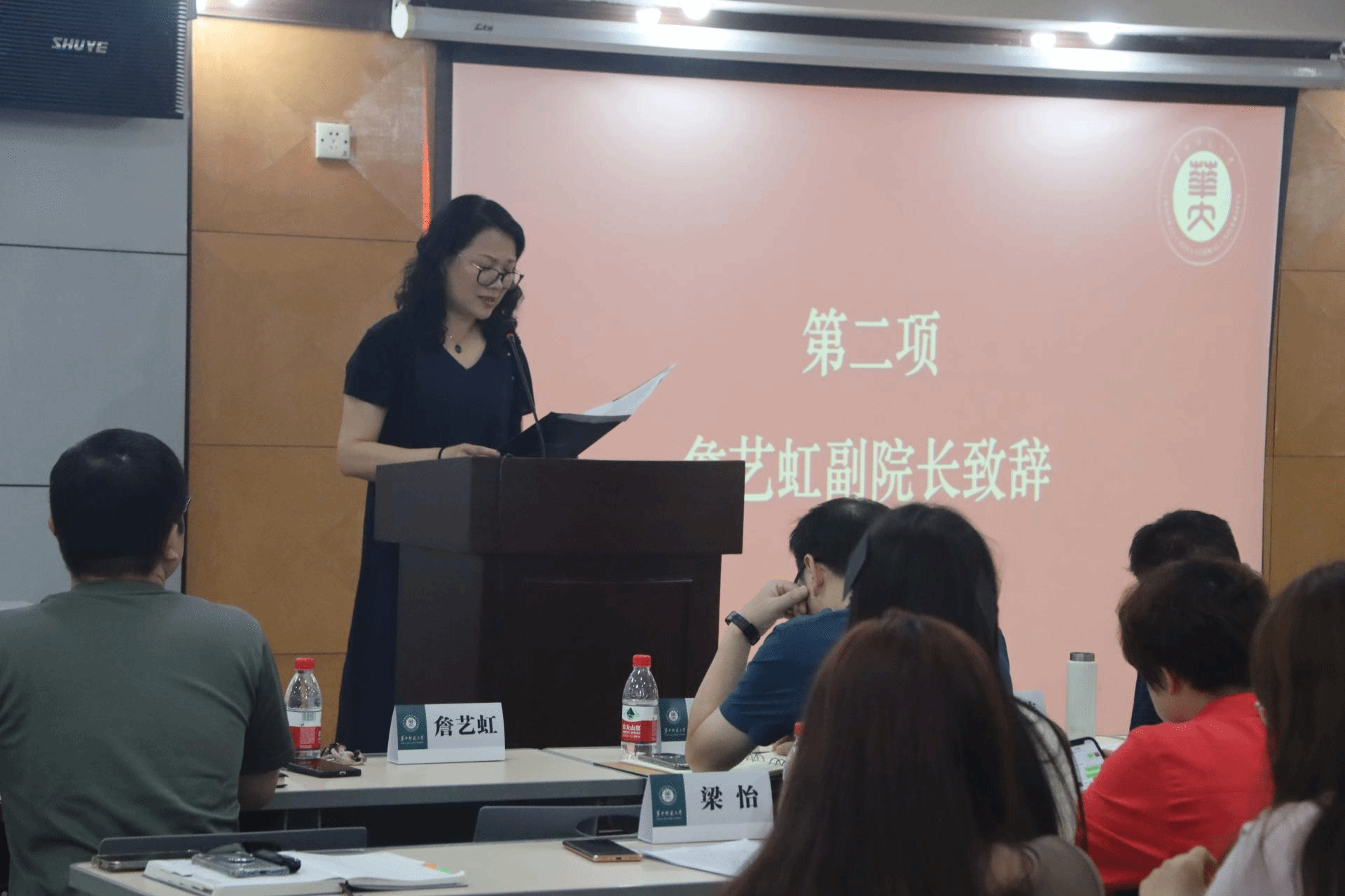 詹艺虹副院长为新生致辞,她对入学的2023级研究生表示了衷心的祝贺,介绍了学校以及学院历史概况。她表示今年是华师建校120周年的校庆之年,是我院构建我院特色发展新格局的起步之年,也是研究生招生迎来的第28个年头。詹艺虹副院长重点用王国维求学的三种境界来表达对2023级研究生的殷切希望,嘱咐同学们努力学习、认真钻研,坚韧不拔、提升技能,增强综合素养。
