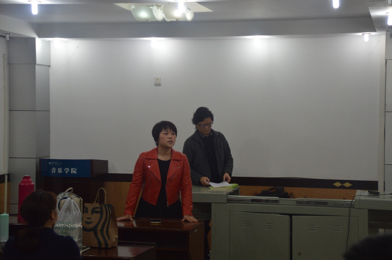 11月19日下午,华中师范大学 “多维视角下的中国钢琴音乐变迁研究”青年学术创新团队学术活动第四期在音乐学院323教室举行。活动邀请武汉音乐学院赵曦教授作了题为《钢琴创作中的中国化思考与实践》讲座。团队负责人、钢琴系副教授刘珂主持讲座。