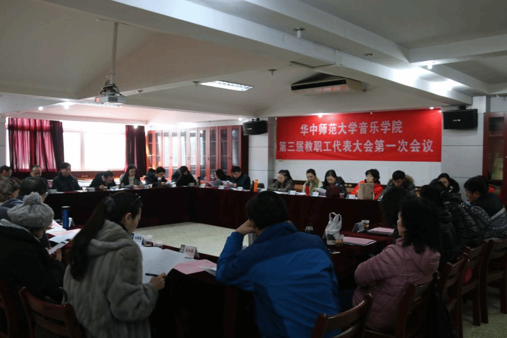 (通讯员:李雅璇)2018年1月22日下午2:30,音乐学院在323会议室召开华中师范大学音乐学院第三届教职工代表大会第一次会议。音乐学院党政联席会成员以及教师代表共计43人参加了本次会议,会议由音乐学院工会主席闫大卫主持。