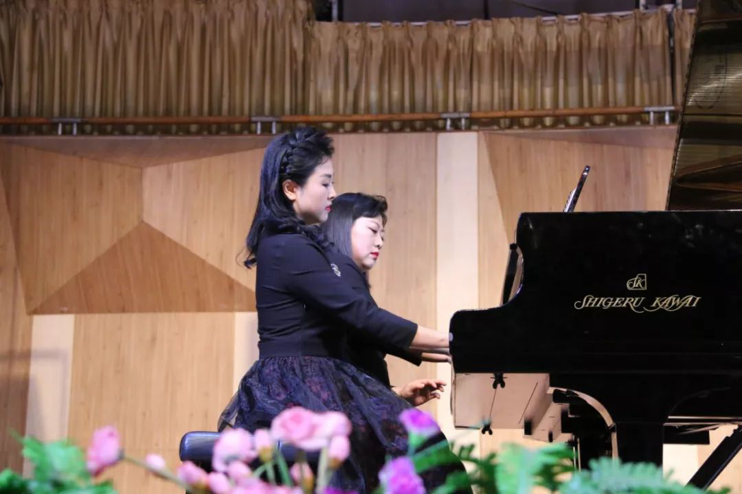詹艺虹老师与张晨老师四手联弹共同演绎罗小平改编的《茉莉花》。这一曲结束后,紧接着他们演奏了由张友瑜编写的《京调》,这是一首十分有“京味”的曲子,有着浓厚的戏曲色彩。