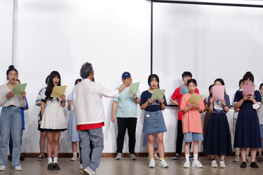 体验课上,大家首先进行了天空合唱团经典的“热身运动”。这是为了让身体放松,激活肌肉,从而有一个最好的状态去面对歌曲,倾听声音。