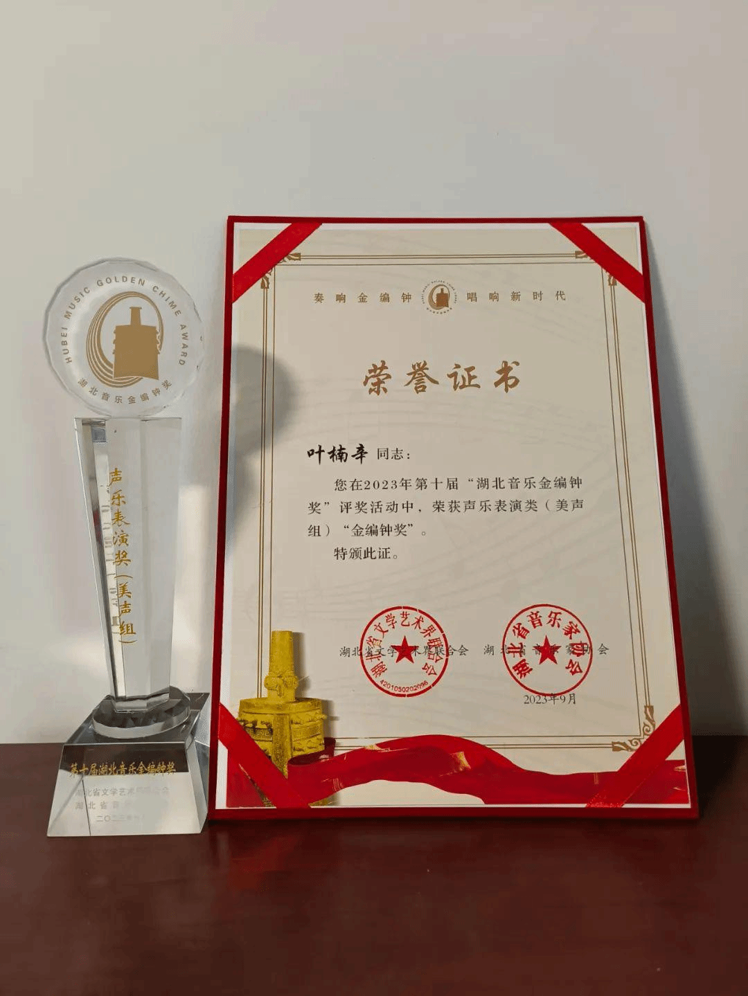 作为一名声乐学习者,我从未停止过追逐心中的那一束光。湖北省金编钟奖是湖北省最具专业性的艺术奖项,能够参加并获奖,对于还在声乐道路上不断摸索、前进的我来说,真的是莫大的荣幸!