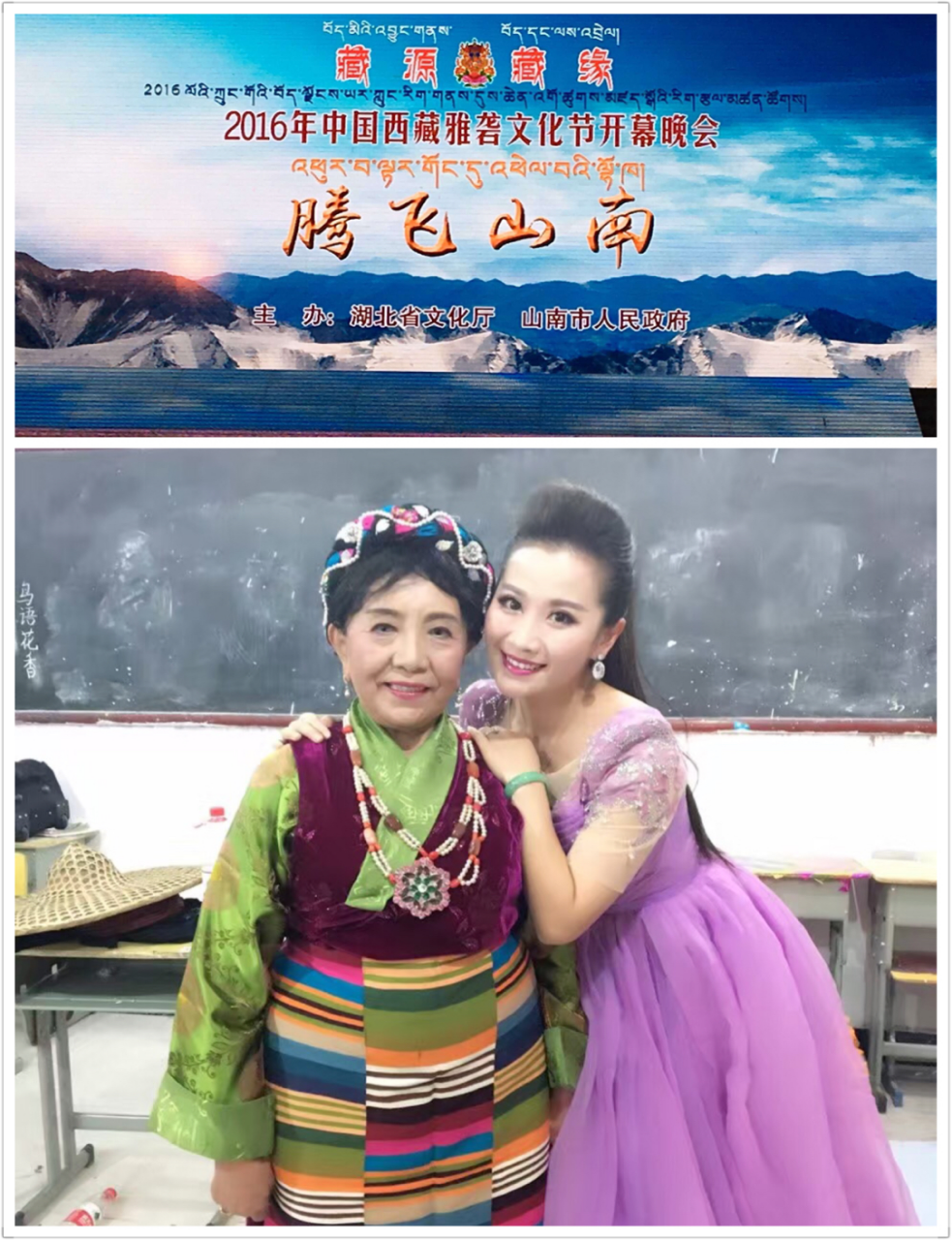 8月15日,万莉老师参加由湖北省文化厅、山南市人民政府主办的《腾飞山南》2016年中国西藏雅砻文化节开幕式晚会。著名歌唱家才旦卓玛老师和万莉老师在一起共贺汉藏一家亲。山南领导还给万莉老师取了一个很好听的藏名:央金美朵翻译过来就是:会音乐的花仙子。万莉老师在《腾飞山南》中国西藏雅砻文化节开幕式晚会中演唱湖北民歌《幸福歌》。