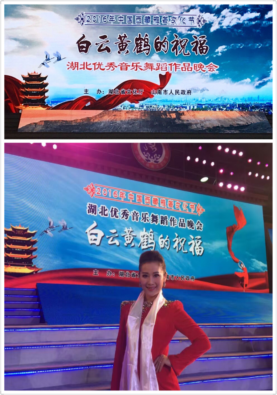 第二天,万莉老师紧接着参加了由湖北省文化厅、山南市人民政府联合主办的湖北优秀音乐舞蹈作品晚会《白云黄鹤的祝福》。万莉老师在湖北优秀音乐舞蹈作品晚会《白云黄鹤的祝福》中演唱《哥哥不来花不开》。因为观众人数众多,空气的氧气量比较少,很多演员都感觉呼吸困难,但是尽管条件如此恶劣,大家还是克服种种不适,坚持表演完将最好的一面展现出来。在他们身上我们不仅看到了作为一名演员的敬业还有对自己事业的热爱。