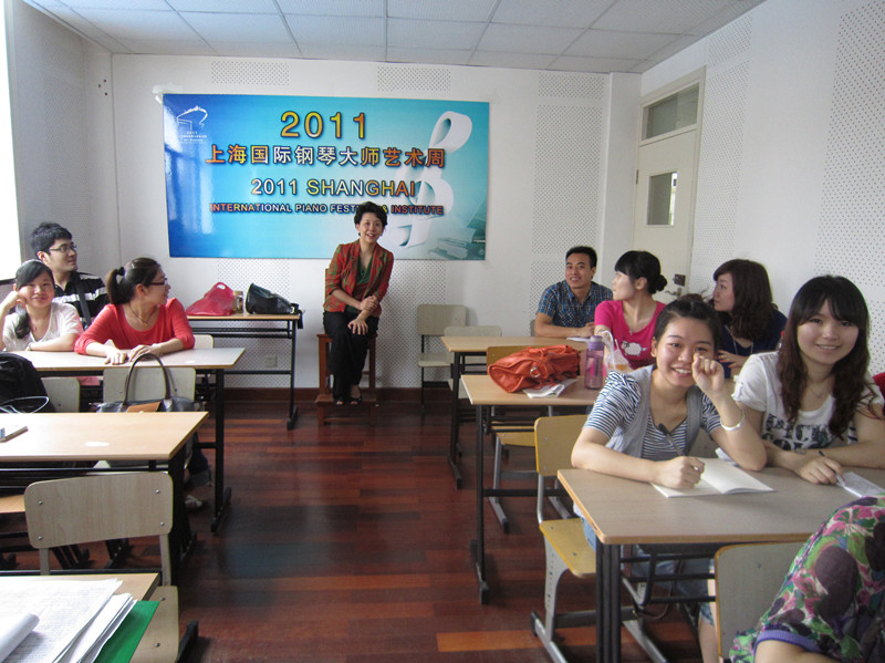 下午1点15分,华师音乐学院09级钢琴方向的同学来到上海师范大学音乐学院C331教室旁听了上海师范大学音乐学院钢琴副教授宗励老师的钢琴课。宗励老师讲解了《肖邦练习曲OP.24》、李斯特《爱之梦》、《拉赫玛尼洛夫练习曲第四首》以及舒伯特《即兴曲OP.42 NO.3》。下午3点半左右,谢晋学院的副院长兼党委副书记孙雅艳老师以及09级辅导员姚萍老师得知09级师生前来上海见习观摩,热情接待了华师音乐学院的同学们,并且召开了一场不同专业的学生代表与学生工作交流会,09级的辅导员许亨洪老师以及各位优秀学生代表都根据自己的专业与学生工作经验积极发言。