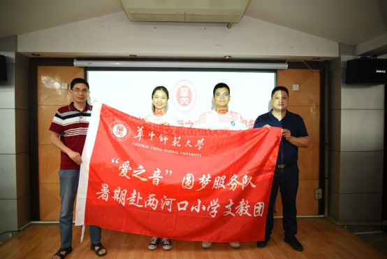 7月4日下午,华中师范大学“爱之音”圆梦服务队暑期赴两河口小学支教团出征仪式在音乐学院323教室顺利举办。音乐学院党委书记冯圣兵、党委副书记董志雄、带队老师付彪、支教团团长胡艺璇以及全体支教团团员均出席了此次会议。