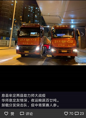 冯圣兵同志不仅将学院防控工作周密布置,认真落实,还十分关心全校和社区的防控工作。他通过各种途径向学校提出建设性意见与建议,积极主动做力所能及的事情。本月初,他本科同学、历史94级校友关云平在群里宣布为全体同学赠寄口罩等防疫物资。他意识到这是个有新闻价值的事情,立即与之私聊。聊着聊着就聊到了学校的疫情及采取的工作措施。最终在不到一个小时的时间里,关云平就决定向学校教育发展基金会捐款,金额也从50万增加到100万,再到200万元,其中70万指定给学校使用。目前,款项已经到账,开始发挥作用。冯圣兵同志多次到校医院为本院老同志取药,总是主动为全华大家园小区的居民取药。参加义务分发爱心蔬菜时还做“诗”一首,歌颂河南息县和云南牟定人民的深情厚谊——华师息定情谊深,夜运粮蔬百廿吨。装卸分发突击队,疫中青菜赛人参。最近,他又积极响应党组织号召,主动向社区报到,接受协助网格员开展工作的任务,并在APP上报名参加疫情防控志愿者行动。