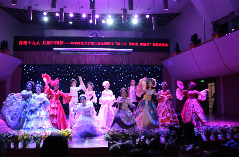 (通讯员:李煜华)三月四日下午,我校第二届女教职工“喜迎十九大,共筑中国梦”,“庆三八,展风采,树新风”服装展演在音乐厅举行。湖北省总工会女职工部部长李薇薇、湖北省教育工会副主席李斌、武汉市妇女联合会主席池源和我校常委副书记、纪委书记黄晓玫出席此次活动,共三十个单位参加。