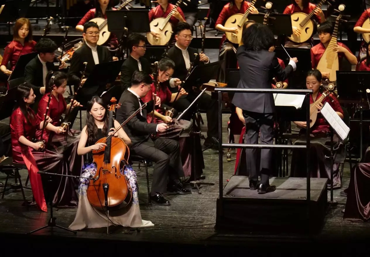 大提琴家康乔瑄德国波恩剧院演奏《庄周梦》。图片来源:苏州民族管弦乐团