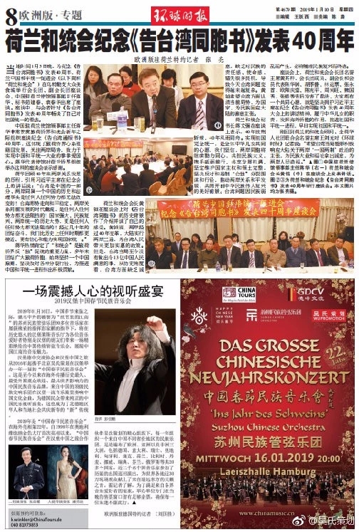 第一站:2019年1月16日 德国汉堡汉堡音乐厅 (环球时报刊发报道)