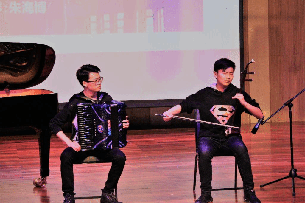 音乐会的开场,1706班全体同学为观众们带来了舞姿优美的舞蹈作品《百花齐放》,伴随着音乐的律动,全场的气氛迅速点燃。民乐器乐合奏《琵琶语+欢沁》,伴随着舞台柔美的灯光,音符如大珠小珠落玉盘般洒落在音乐会现场,其浓浓的中国风拨人心弦,现场又掀起一阵高潮。