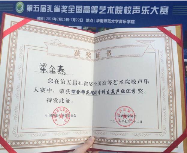 最后,希望声乐系的更多同学能够多多参加这样的声乐比赛,这不仅能拓宽自己的视野,也能在比赛中取得优异的成绩并且认识到自己的短处,为自己创造更美好的未来。面对新世纪的更高要求,声乐系教师和学生决心团结一致,为祖国声乐事业共创辉煌!
