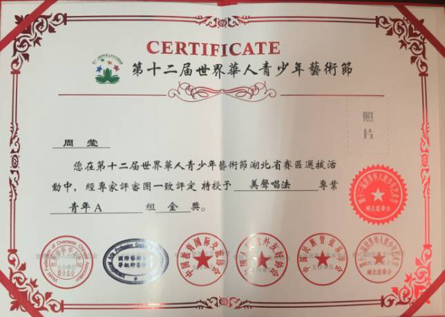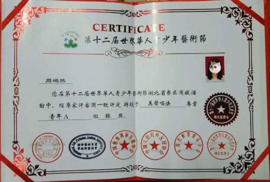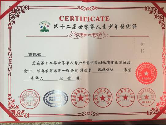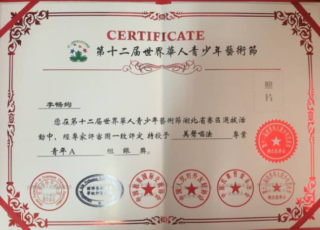 世界华人青少年艺术节声乐比赛金银铜奖 曹佳敏 陈文璐 李畅姁 周莹
