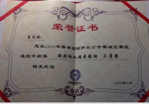 歌剧咏叹调专题组 三等奖:吴艺珍