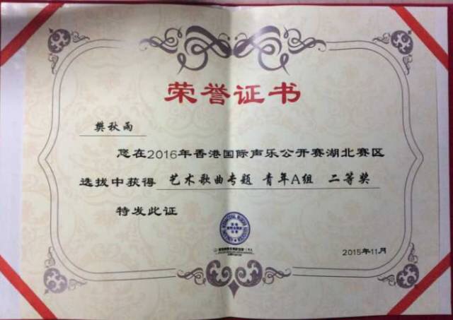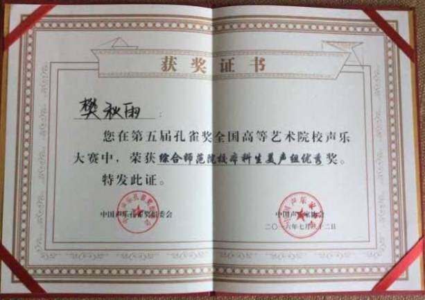 艺术歌曲专题 青年A组 二等奖:樊秋雨