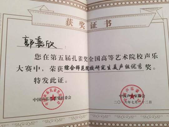 第六届湖北音乐金编钟奖 美声表演类优秀奖:郭嘉欣