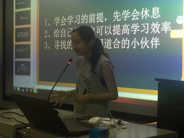 之后,优秀考研代表马天娇上台进行了考研经历的总结性归纳。她简单地向大家讲述自己的学习情况以及考研准备时期的相关工作。就如何选择道路,如何走好考研路为大家详细得道述流程。分享会的结尾,说道:“我觉得考研虽然是一条难走的路,也同样是一条美丽的路。我衷心希望大家在以后的学习生活中,走出属于自己的美丽的路。”在热烈的掌声中,本次分享会顺利结束。