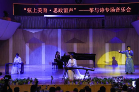 此次音乐会共分为“古韵”和“今声”两个篇章,以历史发展脉络为主线,将诗词与琴音相结合,并融入舞蹈、剧场表演、书法、朗诵、戏曲、说书等元素,充分展现中国民族音乐和优秀传统文化的独特魅力。同时,本场音乐会致力于在文学与音乐的浸润中打造“美育·思政”舞台,搭建高水平艺术实践平台,丰富思政教育中的美育载体,将音乐艺术展演与提升人才培养质量紧密结合,以可视化形式引导青年学子把握时代脉搏,在浓厚的校园文化氛围中带领学生发现美、感受美,培养其审美情趣和创造能力,厚植其家国情怀和使命担当。