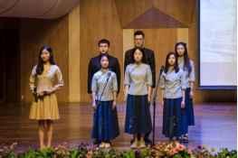 适逢中国共产党百年华诞,在第二篇章——“今声”中,音乐会通过多重的表现形式展现出国民齐心的精神风貌和锦绣中华的欣欣向荣。《苍歌引》将六十年前的瘟疫与当下的疫情相观照,以朗诵的形式表现了人类在困难面前的众志成城;古筝与打击乐结合的《冬虫夏草》充满着灵动与生机,音乐学院学生陈妍和文学院学生喻腾玉为之创作的同名古体诗、现代诗在赋予其对“冬虫夏草”理解的同时,也诠释了成长与生命的意义;华大艺术团民乐团合奏的《我的祖国》将澎湃的爱国热情融入民族管弦乐中,谱写了一曲对祖国的雄壮赞歌。落幕时,《我和我的祖国》音乐声渐起,全场观众纷纷挥舞着手中的红旗,音乐会也在大合唱中走向尾声。