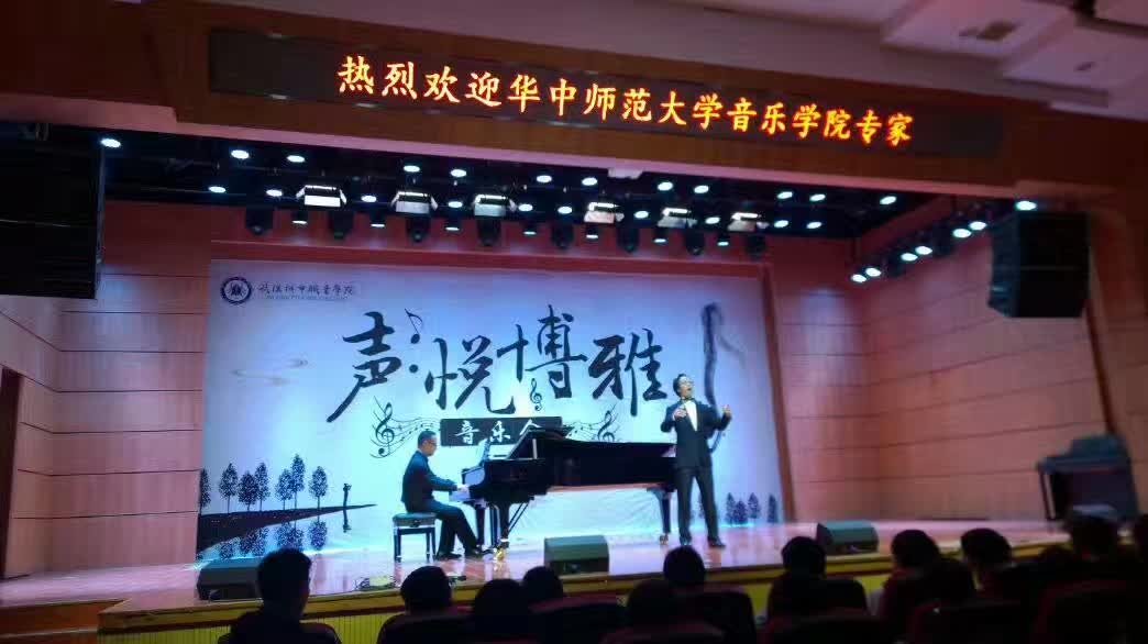 (作者:陈岭)6月12日晚19:30分,受武汉城市职业学院学前教育学院之邀,声悦博雅演出学术团在华中师大音乐学院声乐系副教授周燕老师的带队下,于该院举办了隆重的全声乐类独唱节目的演出。