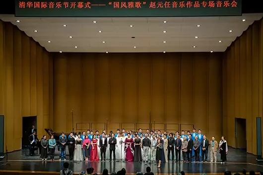 2017年4月28日晚,伴随着清华大学校歌的旋律,首届清华国际音乐节开幕式暨“国风雅歌”赵元任音乐作品专场音乐会在新清华学堂圆满落幕。本场音乐会由艺术教育中心主办,清华控股有限公司独家赞助,“国风雅歌工程”发起者及推广人、著名男高音歌唱家范竞马担任音乐总监及艺术指导。