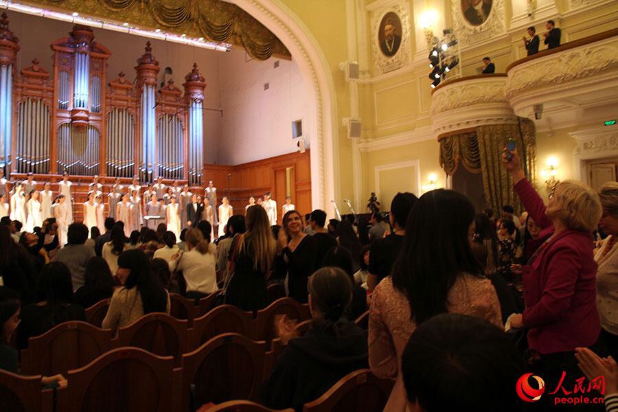 “诗意中国”专场演唱会已纳入2016俄罗斯“中国文化节”框架,也是柴可夫斯基音乐学院建院150周年系列庆祝活动之一。音乐会上,合唱团为观众带来了《春夜喜雨》《小河淌水》《天湖-纳木错》《月亮代表我的心》等多首不同类型的中国歌曲,也演唱了《白桦树》《莫斯科郊外的晚上》两首俄罗斯经典歌曲。田晓宝教授对本报记者表示,中国音乐传统深厚、元素非常丰富,所以这次音乐会尽量从不同方面展示了中国音乐文化的面貌。曲目既包含学院派作品,也包含先锋派作品;既有民族原生态歌曲,也有通俗流行歌曲。