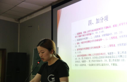 分享会议的最后,甘元元寄语学弟学妹们,考研或保研的成功只是一个新的开始。她希望大家都可以选择最适合自己的道路,在追求自己梦想的道路上奋进。她以一首诗作为她发言的结尾:“每个人都有自己的发展时区,生命就是等待正确的行动时机”以此来激励大家追逐梦想。优秀分享会在全体学生的热烈掌声下顺利结束。