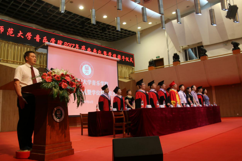 (作者:殷圣媛 摄影:周晓雅)6月18日,华中师范大学音乐学院2017届毕业典礼暨学位授予仪式在音乐厅举行,200余名毕业生身穿学位服见证了他们难忘与辉煌的一刻。校党委副书记覃红教授、院党委书记孙永祥、院长孙逊、副院长吴凡、副院长康瑞军、分党委委员张业茂、以及各院系系主任出席了本次学位授予仪式,仪式由院党委副书记叶雷主持。