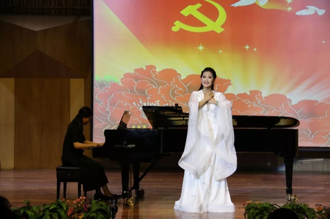 声乐系教师陈真老师所演唱的革命歌曲《又见西柏坡》,也让在场的观众仿佛眺望到建立了三次战争胜利的西柏坡、描绘了新中国宏伟蓝图的西柏坡。
