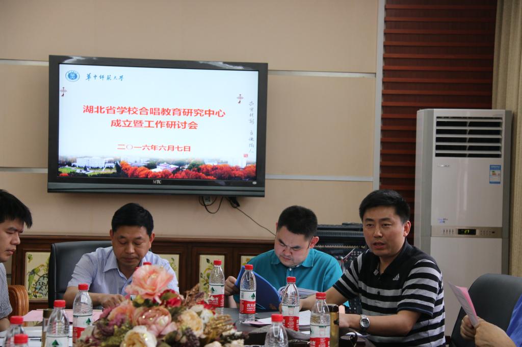 (通讯员 梁金燕)2016年6月7日下午3时,湖北省学校合唱教育研究中心成立暨工作研讨会议在音乐学院317会议室召开。出席本次会议的有湖北省教育厅体卫艺处副处长、教育部艺术教育委员会委员姜贵君、华中师范大学科研部副处长张明生、华中师范大学社科处副处长吴海涛、指挥家、湖北省歌舞剧院王秀峰、指挥家、武汉音乐学院教授陈国权、指挥家、武汉音乐学院教授朱步熹、华中师范大学音乐学院党委书记孙永祥、指挥家、华中师范大学音乐学院教授、院长孙逊、指挥家、华中师范大学音乐学院教授、常务副院长田晓宝、华中师范大学音乐学院副院长康瑞军及各位湖北省学校合唱教育研究中心的成员。