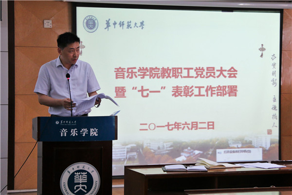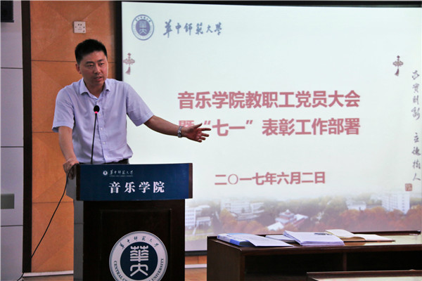 (新闻:殷圣媛 摄影:徐思敏)6月2日下午14:30分,我院于323会议室召开全体教职工党员大会暨“七一”表彰工作部署会议。深入开展“两学一做”学习教育,围绕教育教学抓党建,全面落实党的教育方针,在教学、教研、管理与服务一线争先创优。院党委委员、全体教职工党员参加了本次大会。大会由音乐学院院党委书记孙永祥主持。